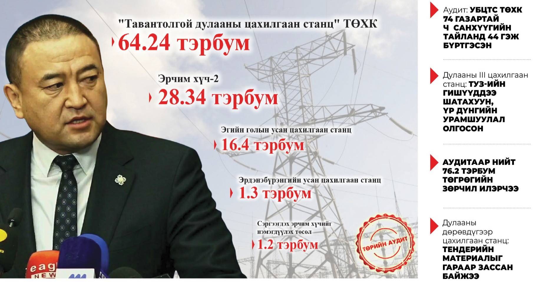 Б.Чойжилсүрэн сайдын “багц” дахь 79.98 тэрбумын зөрчил-2 11:09 “Зууны мэдээ” сонин Нийтийн эрх ашгийн төлөөх ээлжит бүтээлээрээ эрчим хүчний салбарын эдийн засгийн “доголдол”-ын