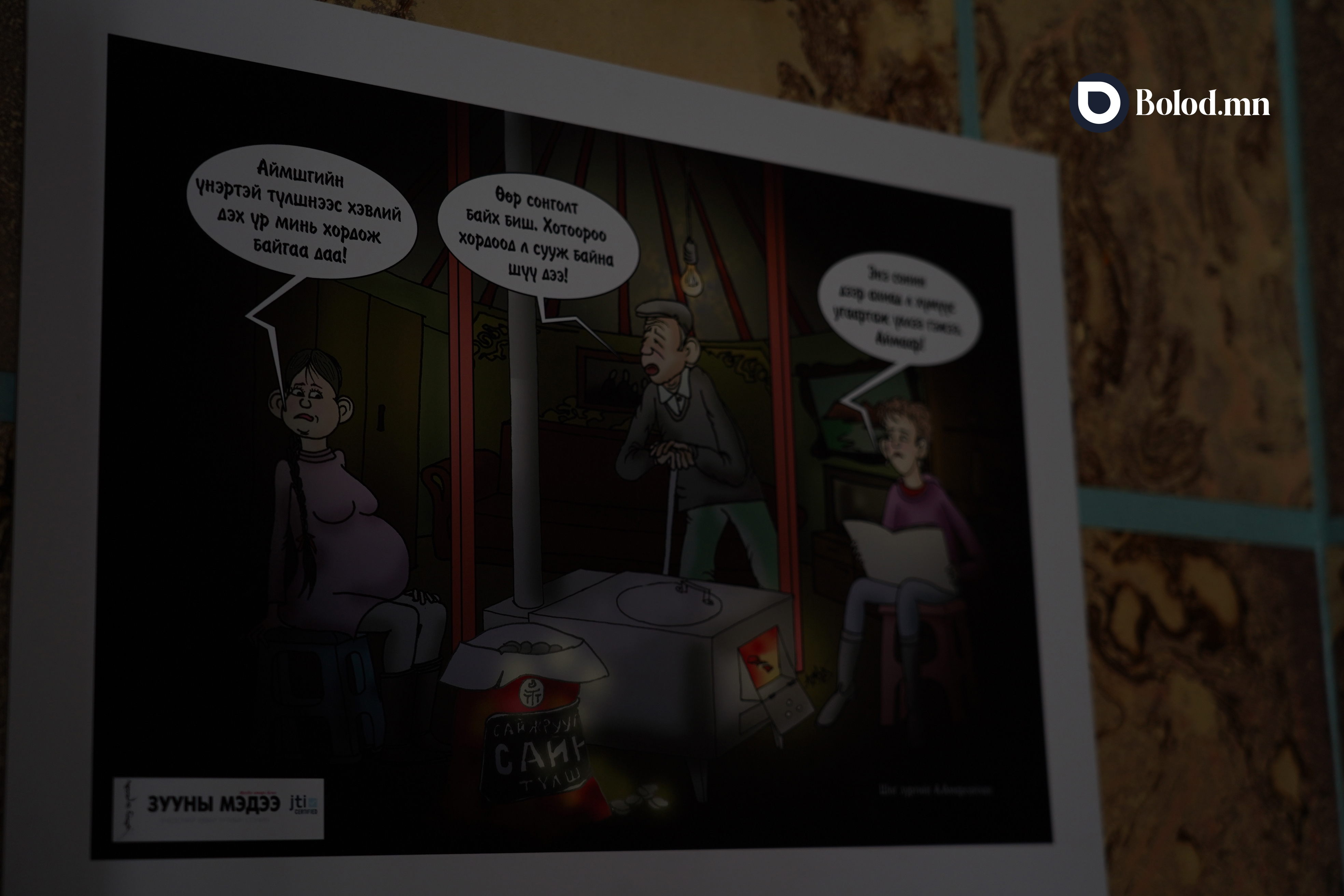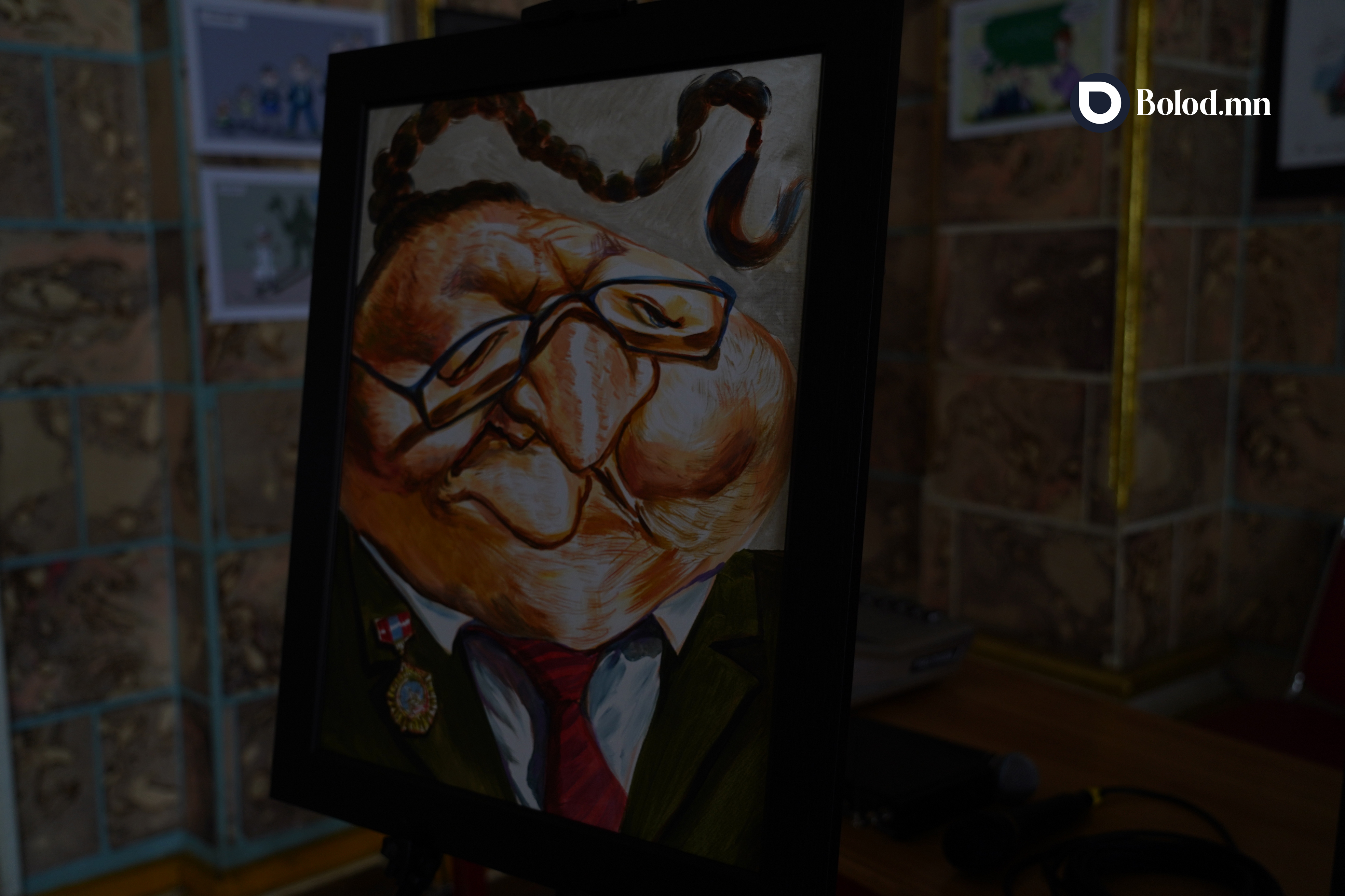 Тус үзэсгэлэнд ардын зураач Ц.Байды, соёлын гавьяат зүтгэлтэн А.Бат-Эрдэнэ, Л.Өлзийбат, урлаг судлалын ухааны доктор, профессор М.Моломжамц, “Болор цом”-ын эзэн яруу найрагч, шог зураач М.Амархүү, шог зохиолч, зураач А.Амарсайхан, шог зураач багш П.Пүүдорж, С.Болд, ахмад шог зураач С.Чимэддорж агсан болон бусад уран бүтээлчийн нийт 110 гаруй бүтээл дэлгэгдэж байна.