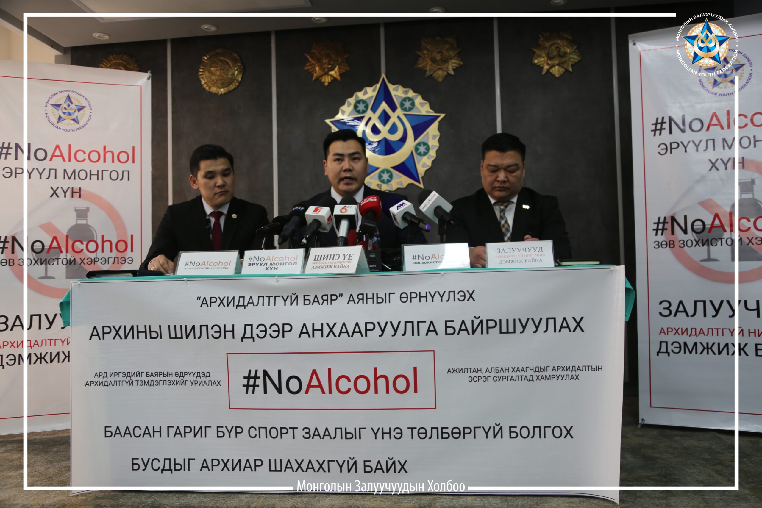Монгол Улсын Ерөнхийлөгч У.Хүрэлсүхийн архидалдтай тэмцэх санаачлагад Монголын Залуучуудын холбоо нэгдэж “Архидалтгүй баяр” аяныг өрнүүлж, ард иргэд тэр дундаа залуучуудыг аливаа баяр ёслолыг архидалтгүй тэмдэглэж өнгөрүүлэхийг уриалж хэвлэлийн хурал хийлээ.