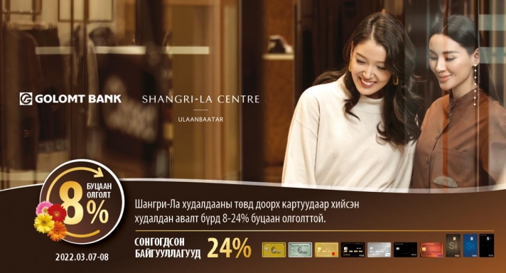 • 8%-ийн буцаан олголт үйлчлэх байгууллагуудыг https://golomtbank.com/wp-content/uploads/2022/03/Copy-of-Shangri-La-8-002-3.pdf дарж харна уу.• 24%-ийн буцаан олголт үйлчлэх байгууллагуудыг https://golomtbank.com/wp-content/uploads/2022/03/Copy-of-Shangri-La-24-1.pdf дарж харна уу (60).jpg)